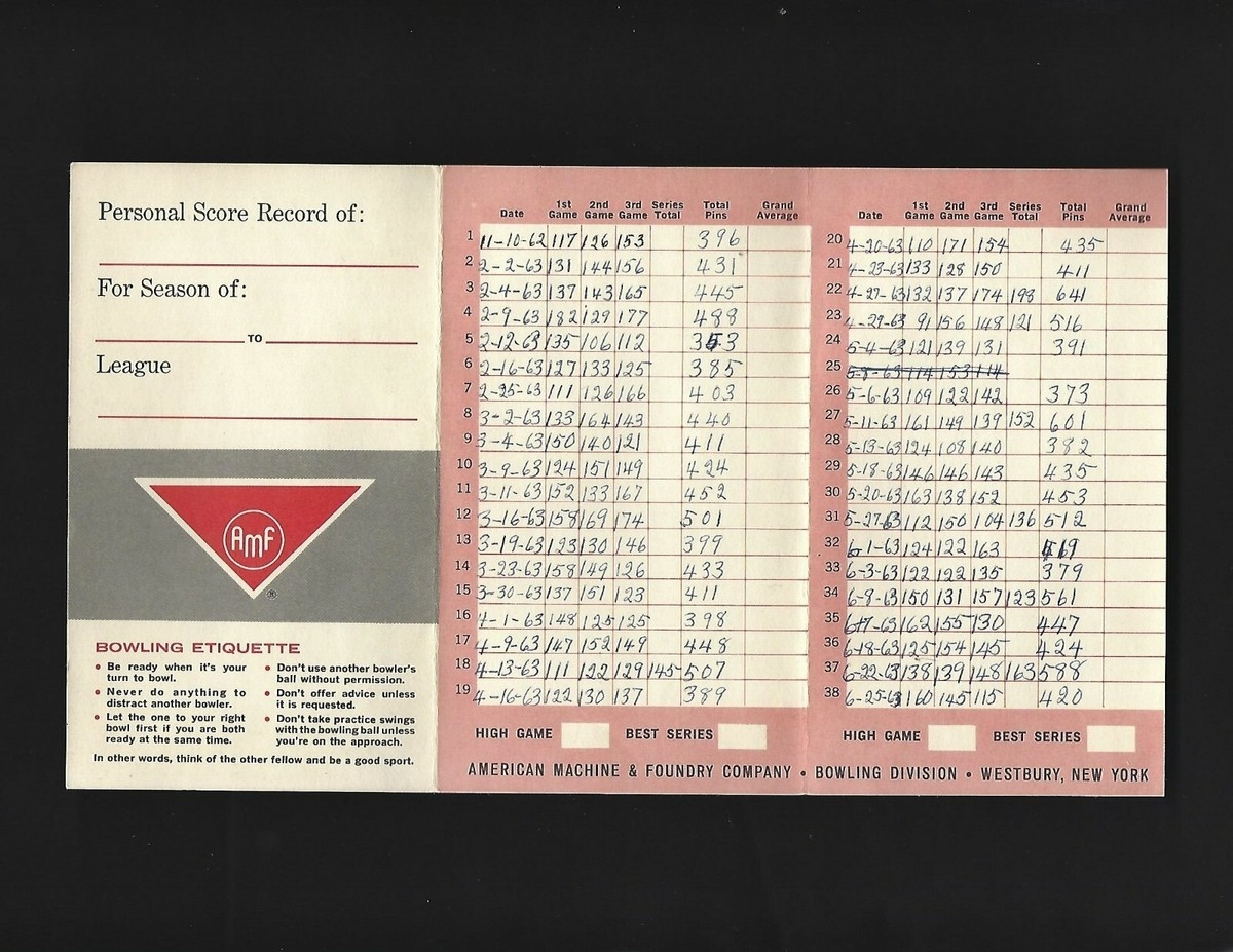 Vintage 1963 AMF Bowling Scored Card Family Cover