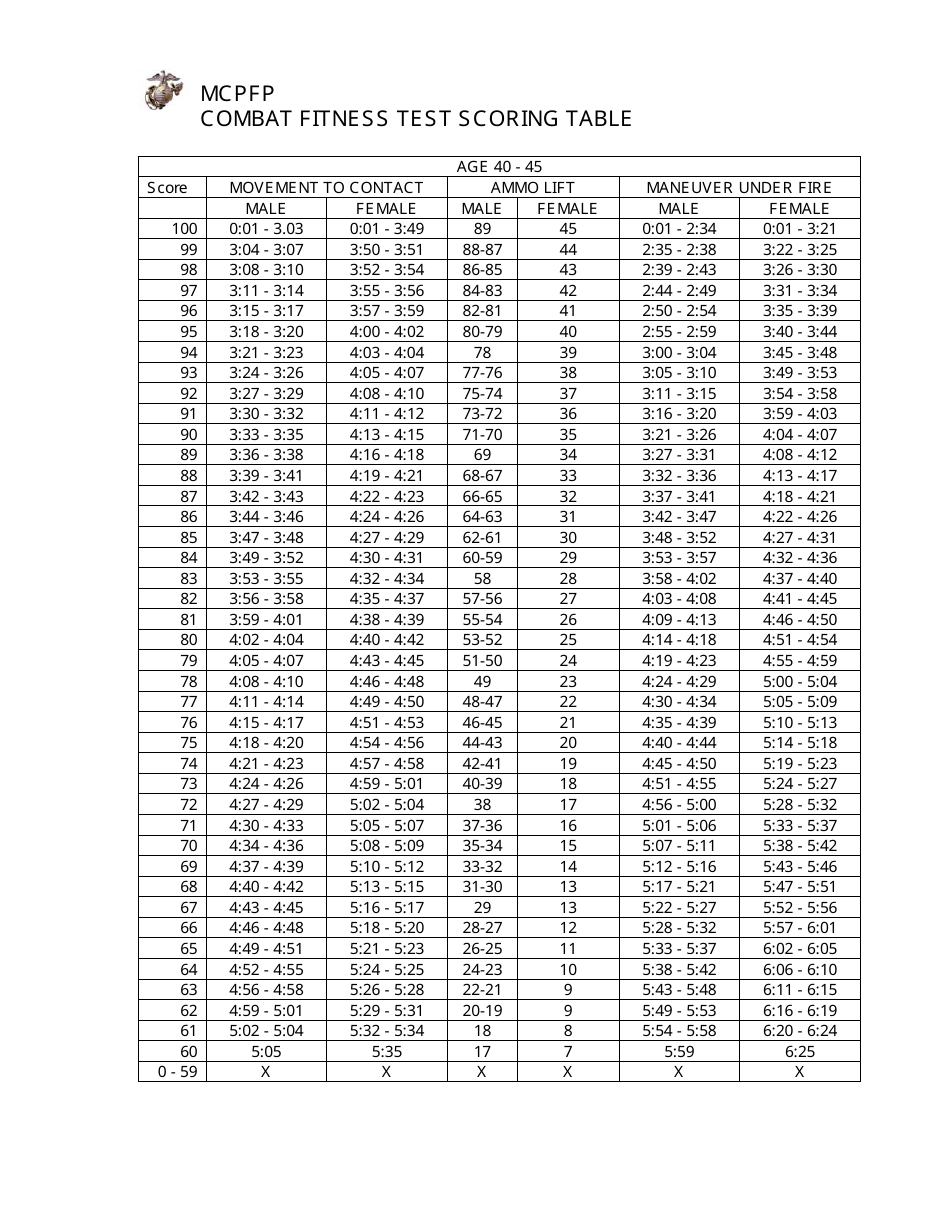 Combat Fitness Test Score Chart Download Printable PDF