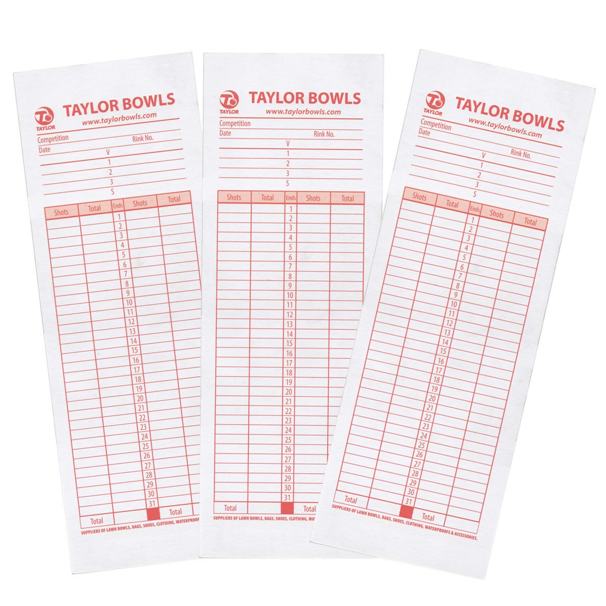 Scorecards 100 Pack Taylor Taylor Bowls Taylor