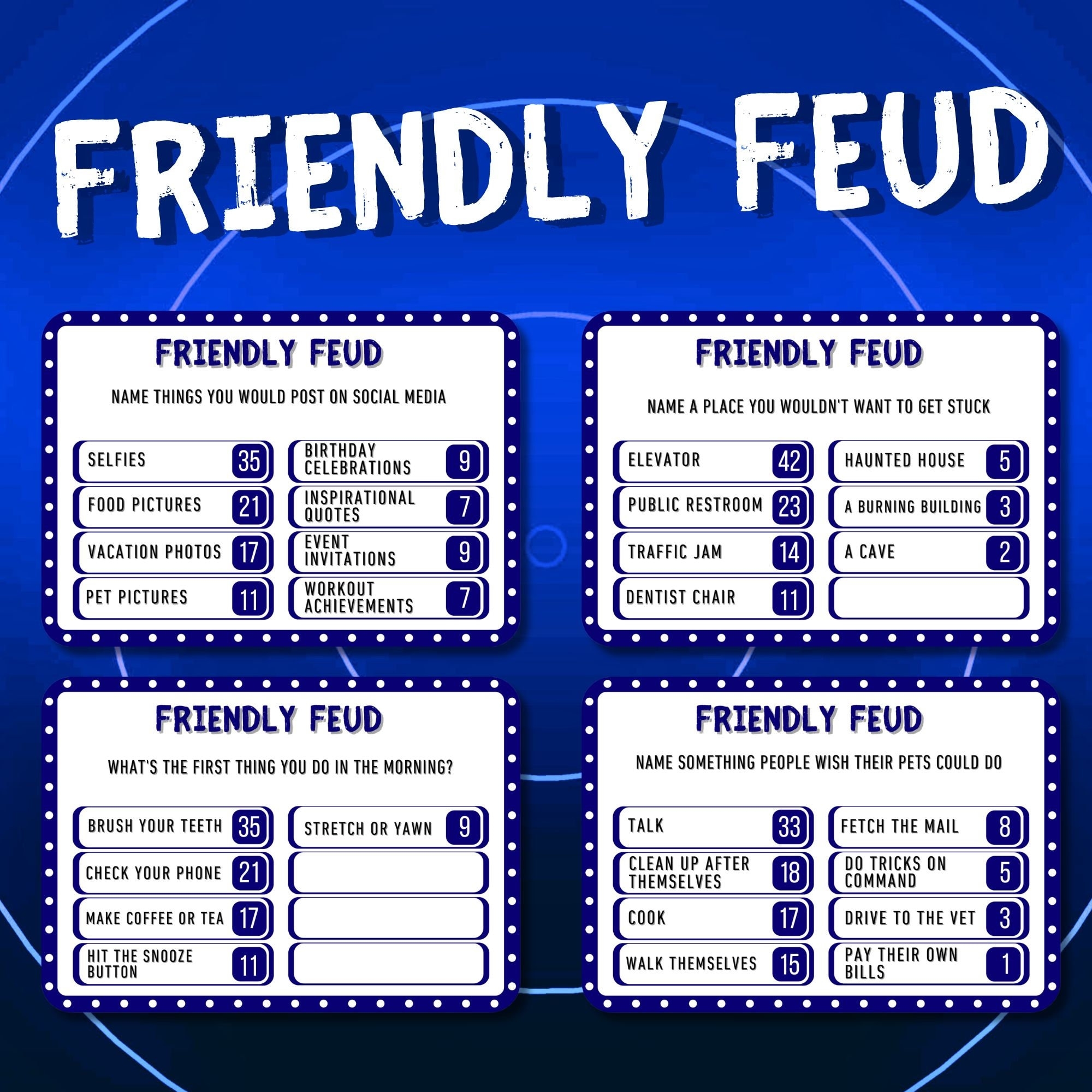 Family Friendly Feud Party Games Family Game Night Printable Group Family Reunion Game Team Game Family Fued Printable Trivia Question Cards Etsy