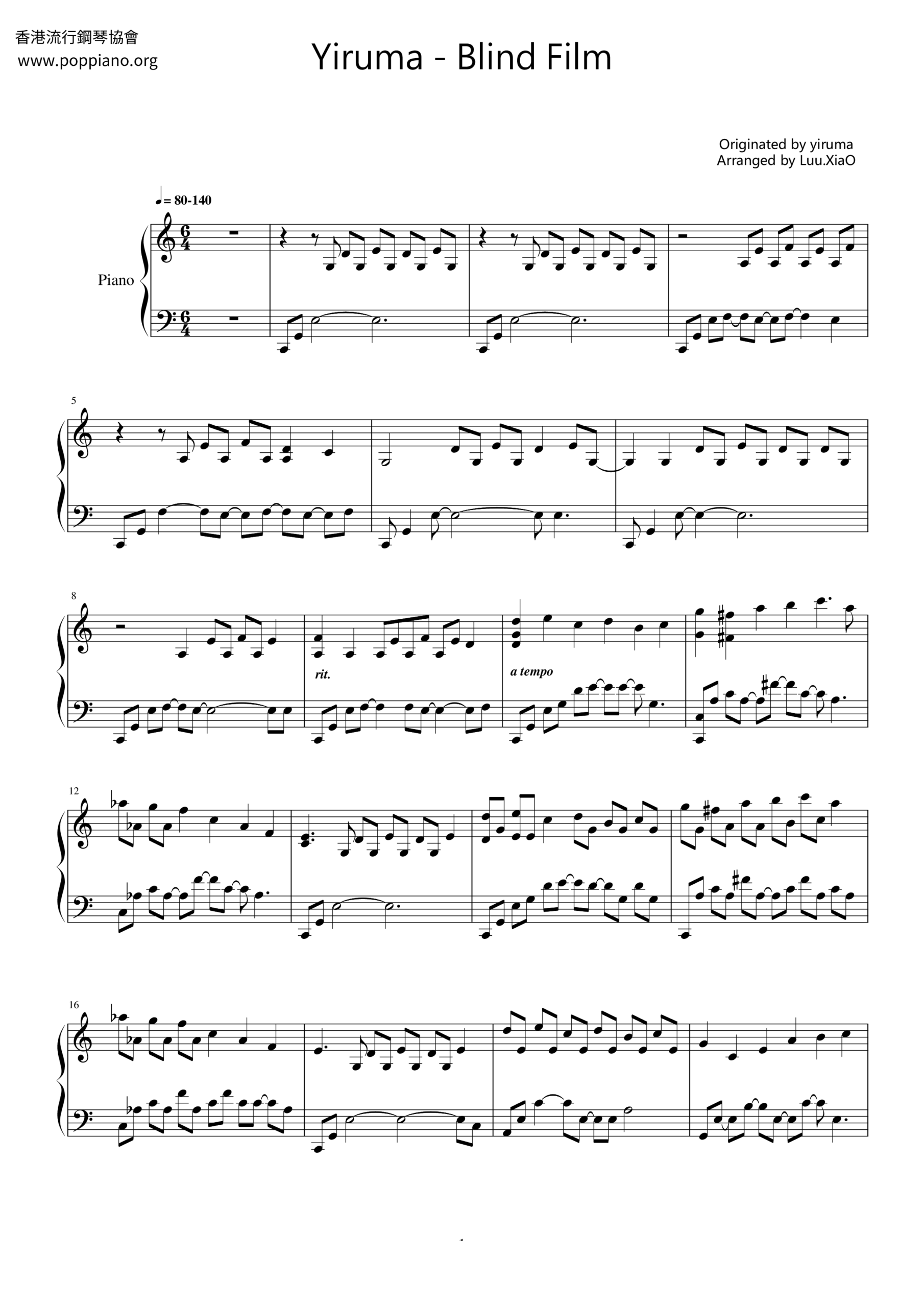 Yiruma Blind Film Sheet Music Pdf Free Score Download