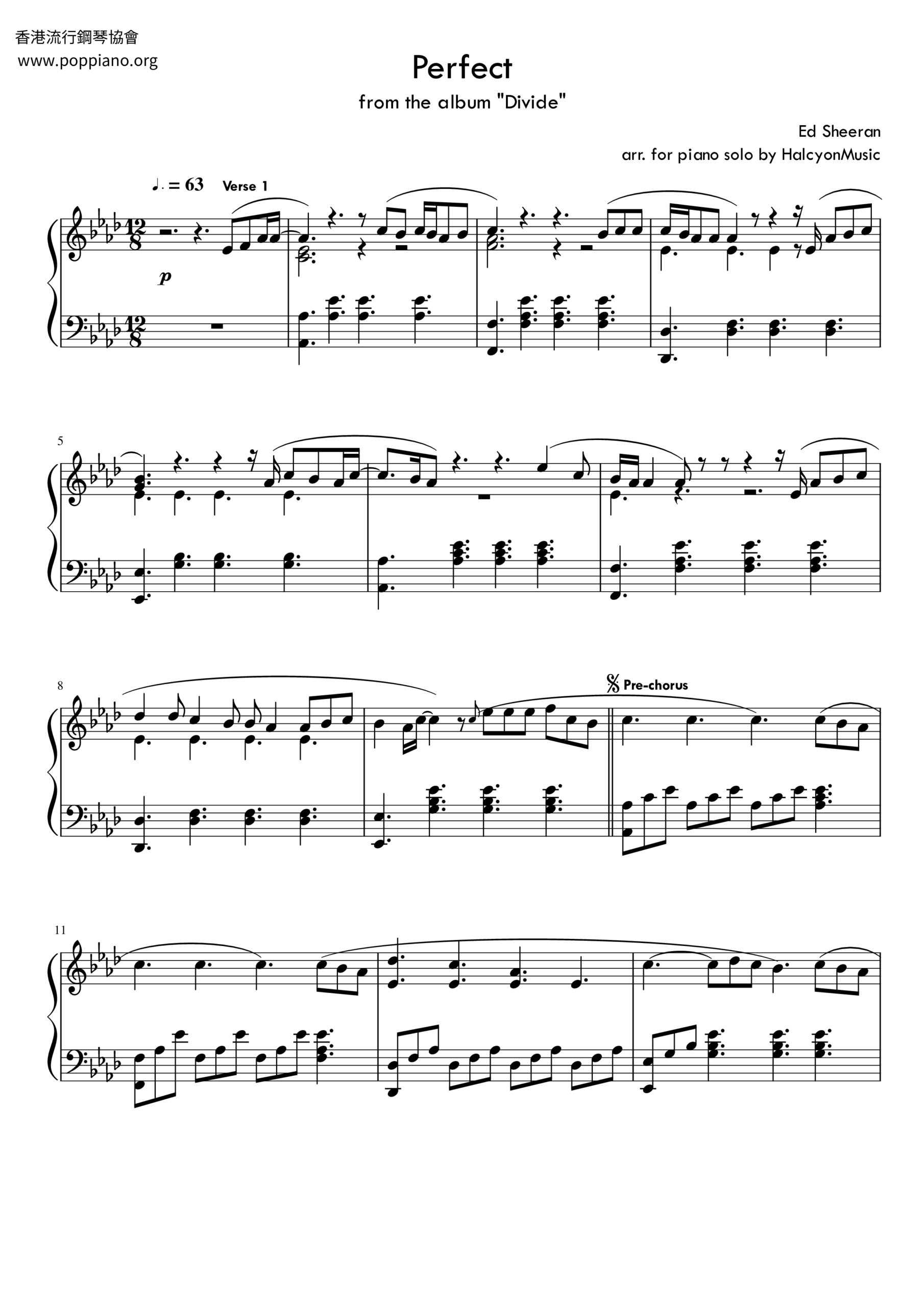 Ed Sheeran Perfect Sheet Music Pdf Free Score Download