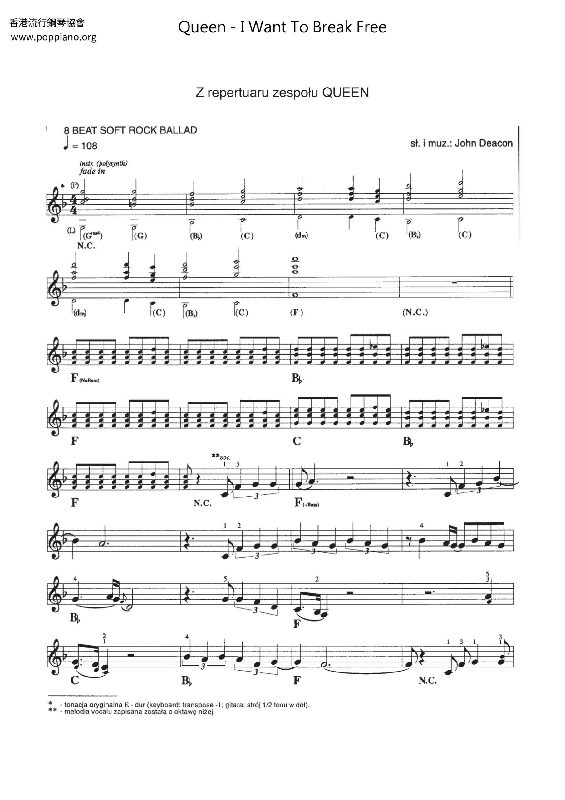 Queen I Want To Break Free Sheet Music Pdf Free Score Download