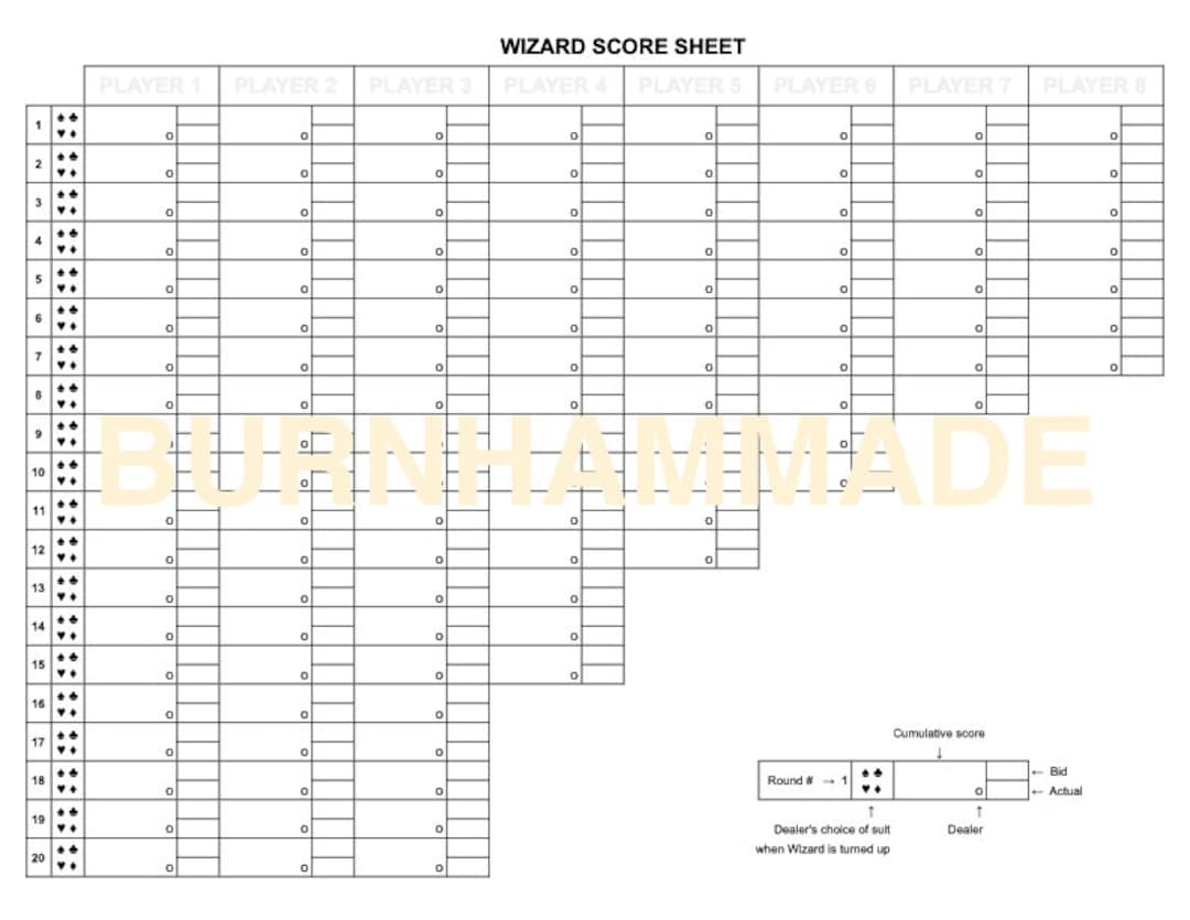 Wizard Score Sheet Wizard Card Game Score Sheet Printable Wizard Score Pad Wizard Score Card Wizard Score Pads Etsy