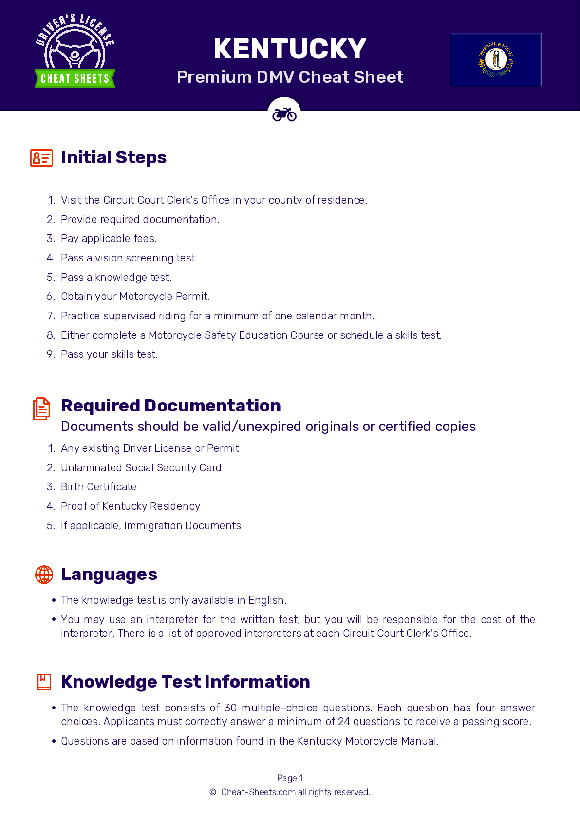 2025 Kentucky DMV Test Cheat Sheet 99 Pass Rate