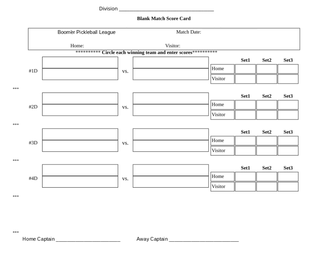 Pickleball Score Sheet 8 5