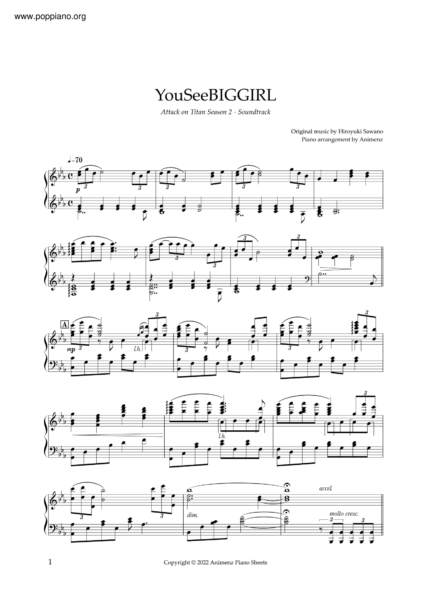 Hiroyuki Sawano You See Big Girl Sheet Music Pdf Free Score Download