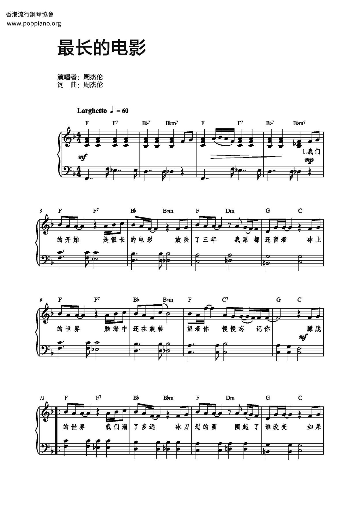 Jay Chou The Longest Movie Sheet Music Pdf Free Score Download