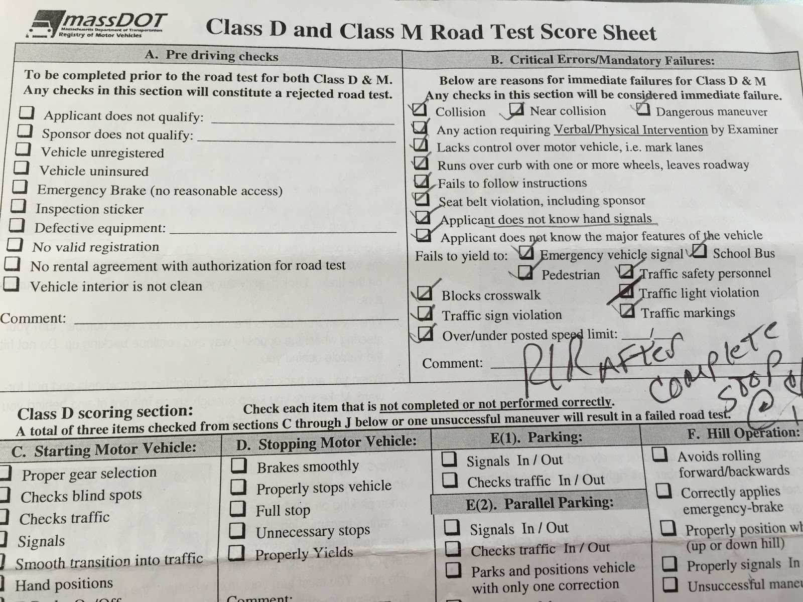 Crucial Elements of the Massachusetts Road Test Score Sheet