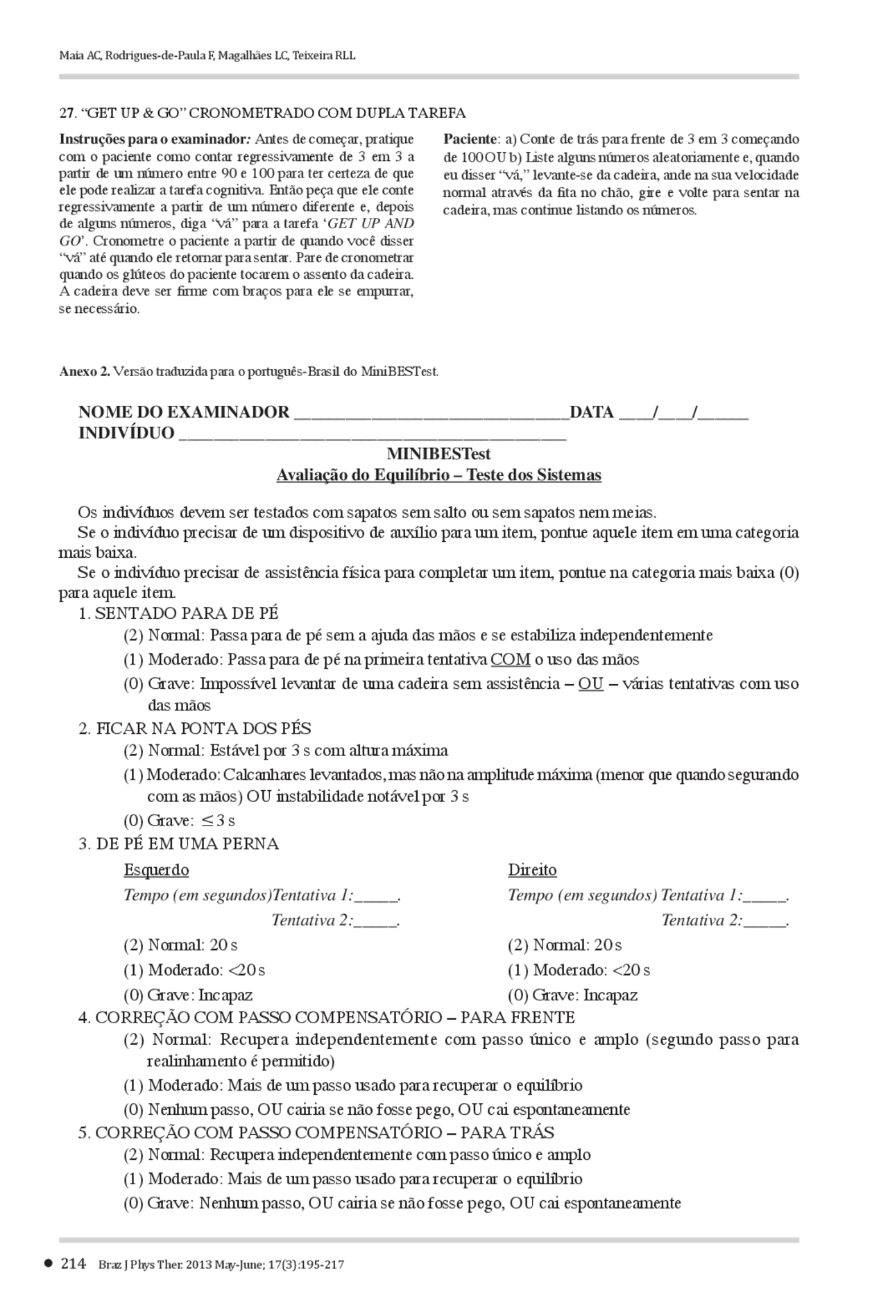 ESCALA DE AVALIA O MINI BEST TEST Tradu es Avalia o De Desempenho Docsity