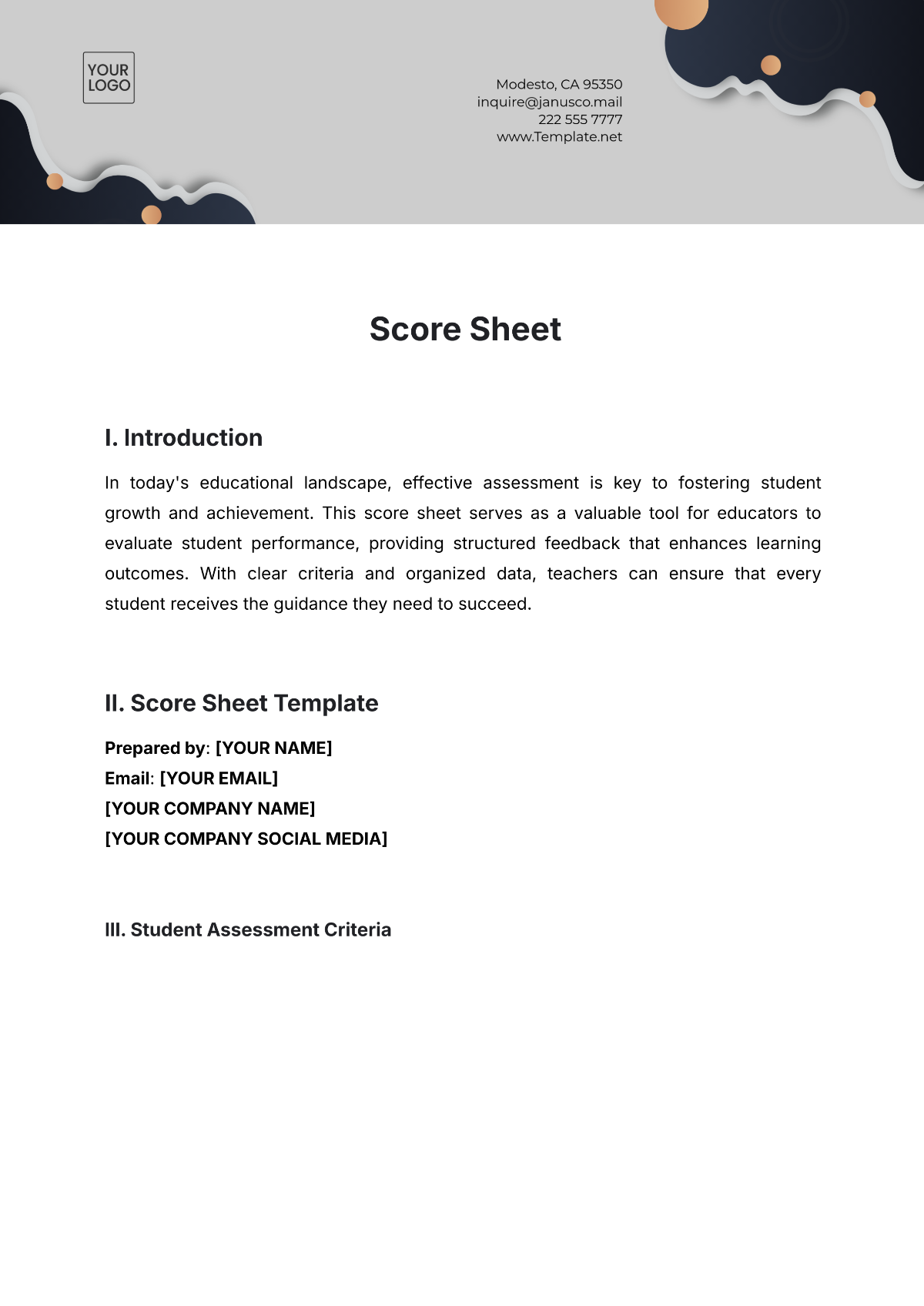 Free Score Sheet Templates Editable And Printable