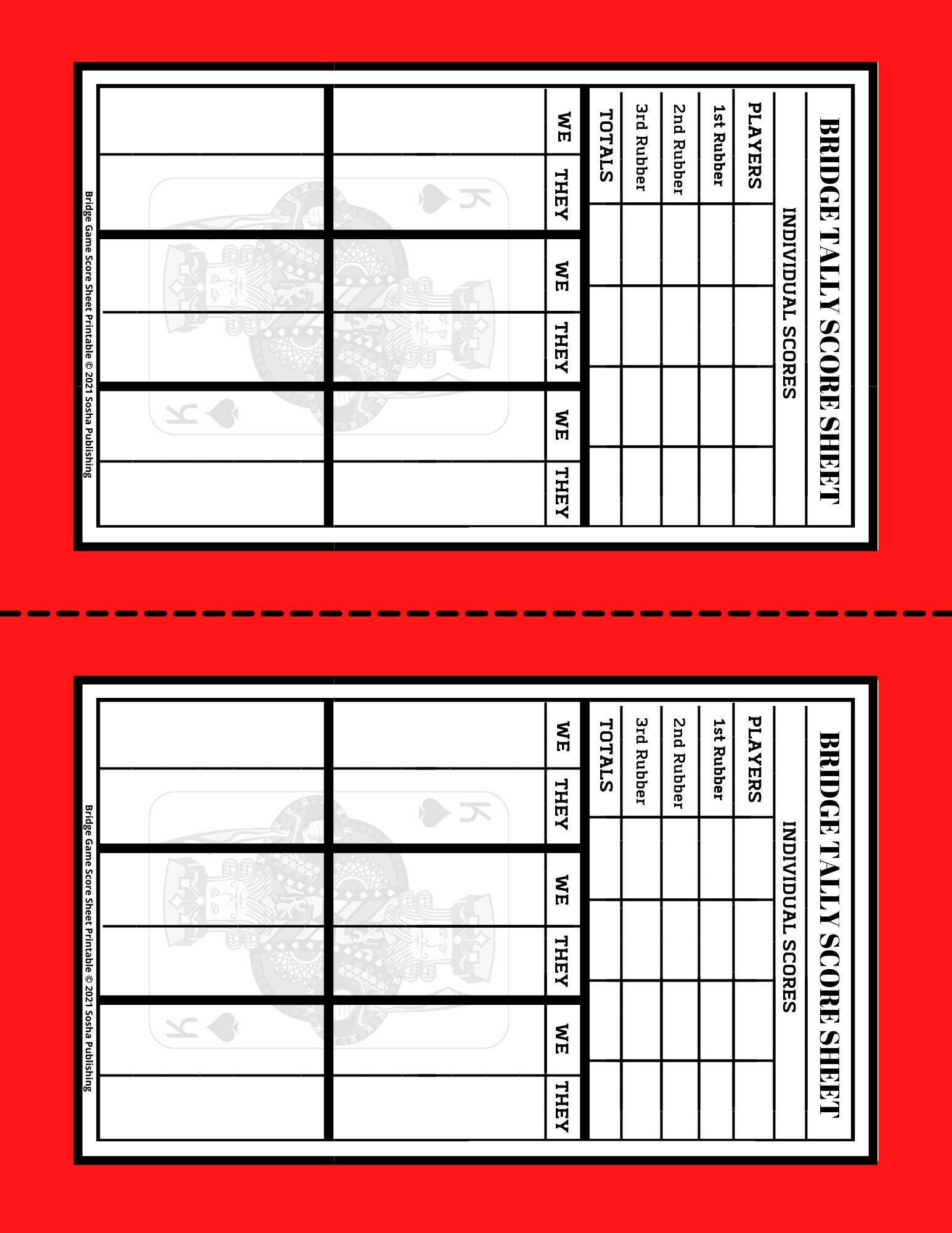 Printable Large Size Bridge Score Sheets
