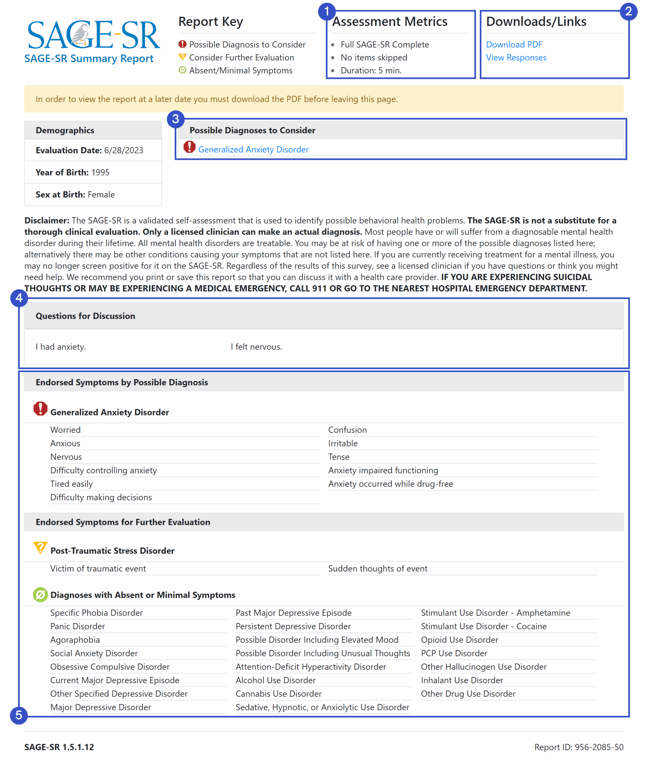 SAGE SR Assess 35 Mental Health Disorders