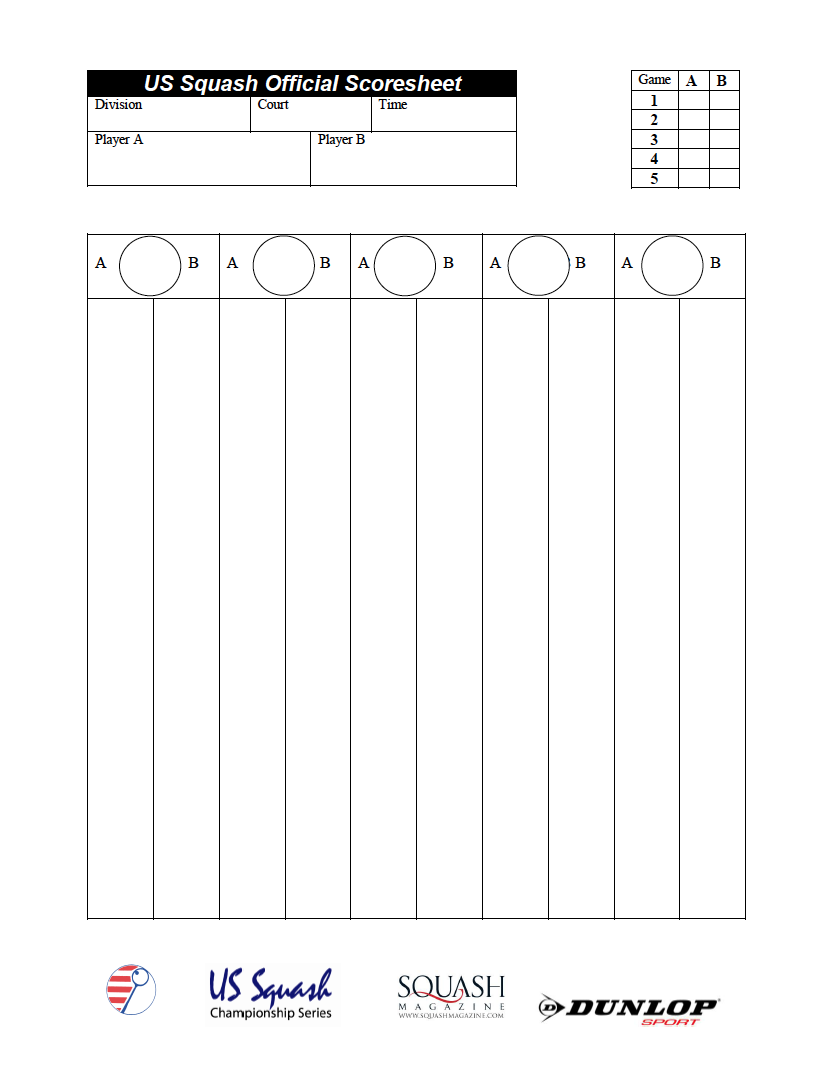Squash Score Sheet Template