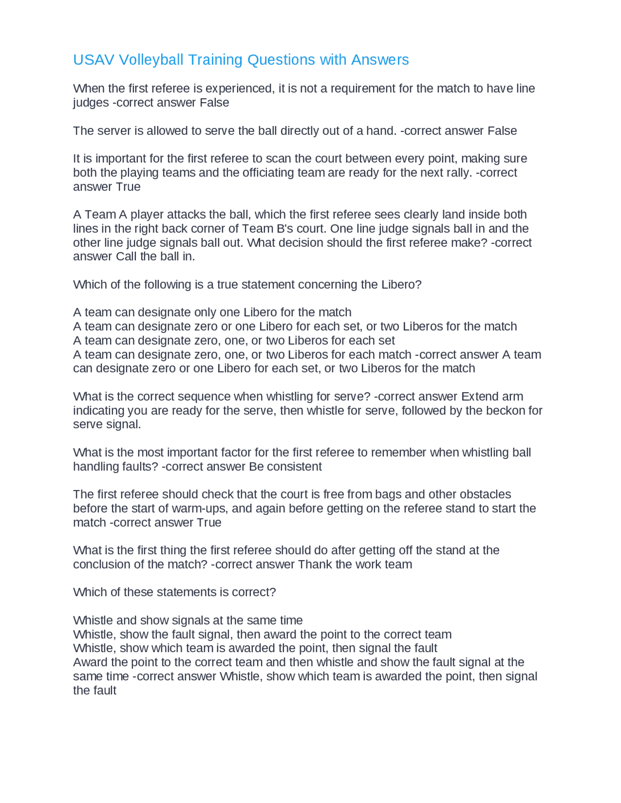 USAV Volleyball Training 73 Questions And Answers Exams Training And Development Docsity