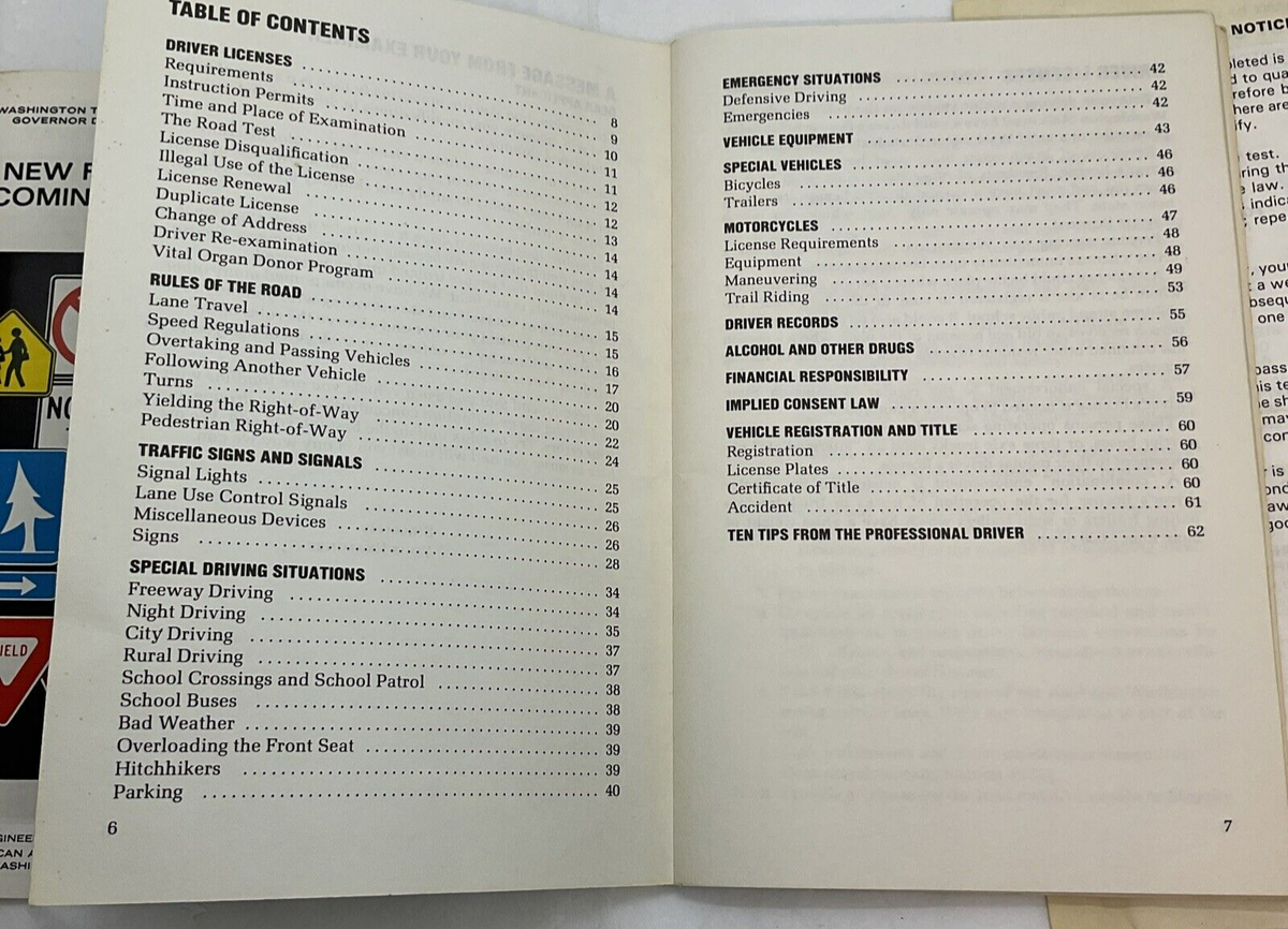 Vintage 1987 Washington State Driver s Guide Test Score Sheet U0026 New Road Signs EBay